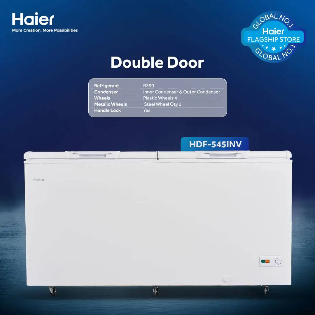 Be the first to review “Haier HDF-545 INV – 19.2 CFT Double Door Inverter Deep Freezer” Cancel reply